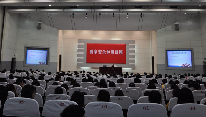 为贯彻落实习近平总书记提出的提高全民国家安全意识的指示精神,10月20日晚上,绍兴市国家安全局相关处室负责人为15级新生作了一场国家安全形势讲座。该负责人阐述了国家安全形势教育的重大意义,为同学们深度剖析了颜色革命的含义、真相、特点、危害和间谍行为的实质,《反间谍法》内容。号召大学生要牢固树立爱国意识、担当意识,认清国家安全形势,要树立正确的世界观,人生观,价值观;充分认识《反间谍法》的重要意义,自觉做到学法、守法、护法;遇到可疑情况及时向国家安全机关报告。
