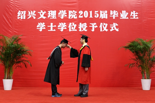 学院院长齐陈泽教授为毕业生致辞,他向顺利毕业、即将开始崭新人生旅程的2015届毕业生表示热烈的祝贺和美好的祝愿。他回忆了2015届毕业生在校园里美好的青春足迹,对大家学有所成感到无比的欣慰,并语重心长地嘱咐同学们,无论现在和未来怎样,都要永不停歇追求成长的脚步。在奉献社会、服务地方中实现自我价值,以自强不息和艰苦奋斗的精神,成为社会的中坚;要坚持学习,形成终身学习的良好习惯,保持学习的动力和创造的活力,从书本、交往、挫折、社会实践中学习,以勤于思索、勇于创新的精神追求卓越的人生境界;要坚守高尚的品格,要坚守良知、懂得感恩、讲诚信、讲奉献;要脚踏实地,保持谦虚的态度、豁达的心态和宽容的性情,相信自己的未来掌握在自己手中。最后,他深切地说,“虽然今天你们要告别母校了,但你们中的每一位,仍然是绍兴文理人,这是你们人生的印迹。在此,我感谢你们四年来与这个学院共同成长。我也希望,当你们安顿好工作和生活,有了时间,就常回家看看。”