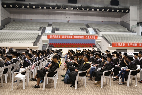 2015届毕业典礼暨学位授予仪式在学校体育馆隆重举行。学院领导和部分教师代表出席了典礼,仪式在庄严的国歌声中拉开序幕。