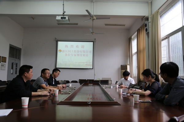 5月16日下午,浙江闰土股份有限公司陈志庆副总经理、人力资源和后勤保障部部长俞氽叶二人来韩国av 洽谈,学院齐陈泽院长、魏佩敏书记、徐青副书记、季根忠教授接待了来访。