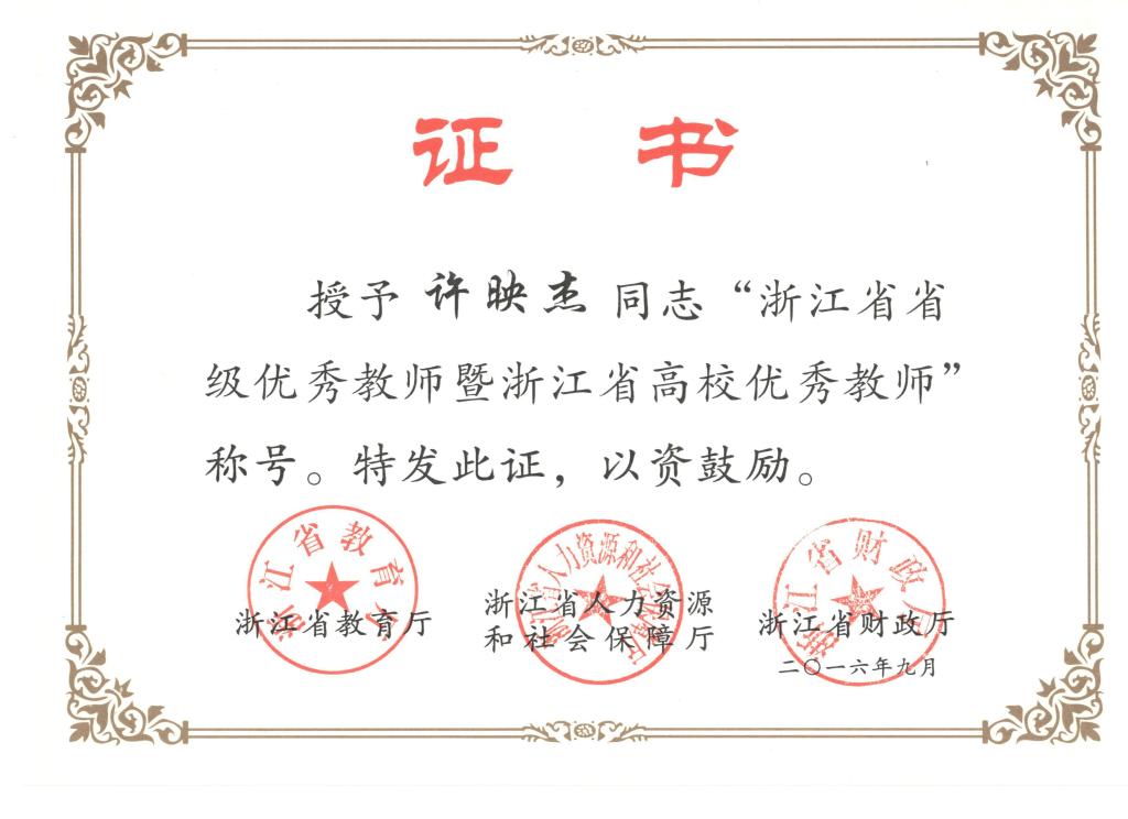 日前,根据《浙江省教育厅 浙江省人力资源与社会保障厅 浙江省财政厅关于表彰2016年省级优秀教师暨高校优秀教师、省农村教师突出贡献奖的决定》(浙教人〔2016〕118号)精神,我校韩国av 许映杰老师获“2016年省级优秀教师暨省高校优秀教师”荣誉称号。 “浙江省高校优秀教师奖”是浙江省教育厅、人力资源和社会保障厅、财政厅为进一步增强广大教师教书育人的责任感和使命感,弘扬爱岗敬业、爱生重教、为人师表、无私奉献的崇高精神,表彰在教书育人、科学研究和社会服务工作中作出突出贡献的高校教师而设立的省级教师荣誉奖。自2012年首届省高校优秀教师评选以来,我校已有五位教师获此殊荣。