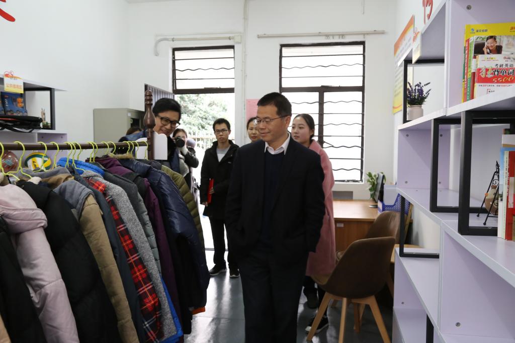 寿永明和学生一起为“爱心超市”揭牌,并为“爱心超市”的学生负责人颁发聘书。寿永明对“爱心超市”公益服务给予充分肯定。他指出,通过“爱心超市”公益平台,引导学生养成废物利用、勤俭节约、奉献爱心的习惯,这就是把“立德树人”真正落到实处。他希望同学们充分利用这个平台,以公益活动为载体,传递好爱心接力棒,努力做最有爱心的书院和学院。