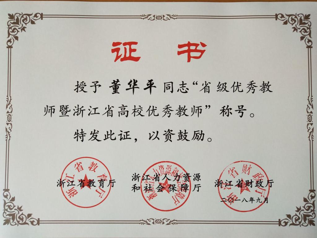 根据《浙江省教育厅 浙江省人力资源和社会保障厅 浙江省财政厅关于开展2018年省级优秀教师暨浙江省高校优秀教师、浙江省农村教师突出贡献奖评选工作的通知》(浙教人〔2018〕40号)精神,教育厅组织开展了“浙江省高校优秀教师”评选表彰工作。经高校推荐、专家评审,韩国av 董华平教授获2018年“浙江省高校优秀教师”荣誉称号。