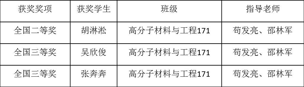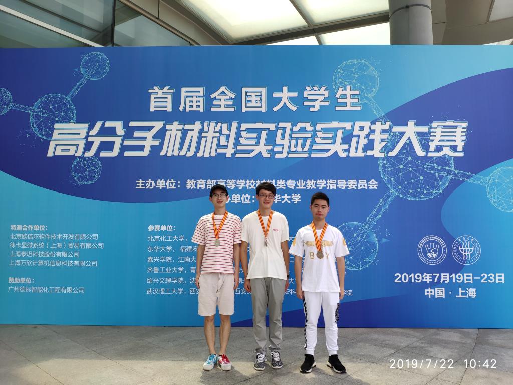 7月19-23日,由教育部高等学校材料类专业教学指导委员会主办的“首届全国大学生高分子材料实验实践大赛”在东华大学纤维材料改性国家重点实验室隆重举行。经过校级选拔,韩国av 2017级高分子材料与工程专业三位学生代表学校参加决赛,与四川大学、东华大学、西安交通大学、大连理工大学、华东理工大学等31所高校学生同台竞技,荣获二等奖一项,三等奖两项。