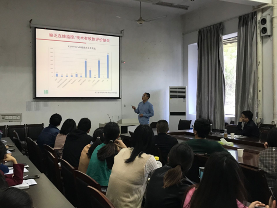 翁小乐老师首先就自己的研究领域和特长与在场老师和同学进行说明和互动,并用通俗易懂的事例引出所讲授的报告主题。