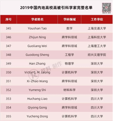 11月19日,科睿唯安发布了2019年“高被引科学家”名单,全球近60个国家的6216人次来自各领域的高被引科学家入榜。入榜这份名单的自然科学家均须发表多篇高被引论文,其被引频次位于同学科前1%,彰显他们在同行之中的重要学术影响力。