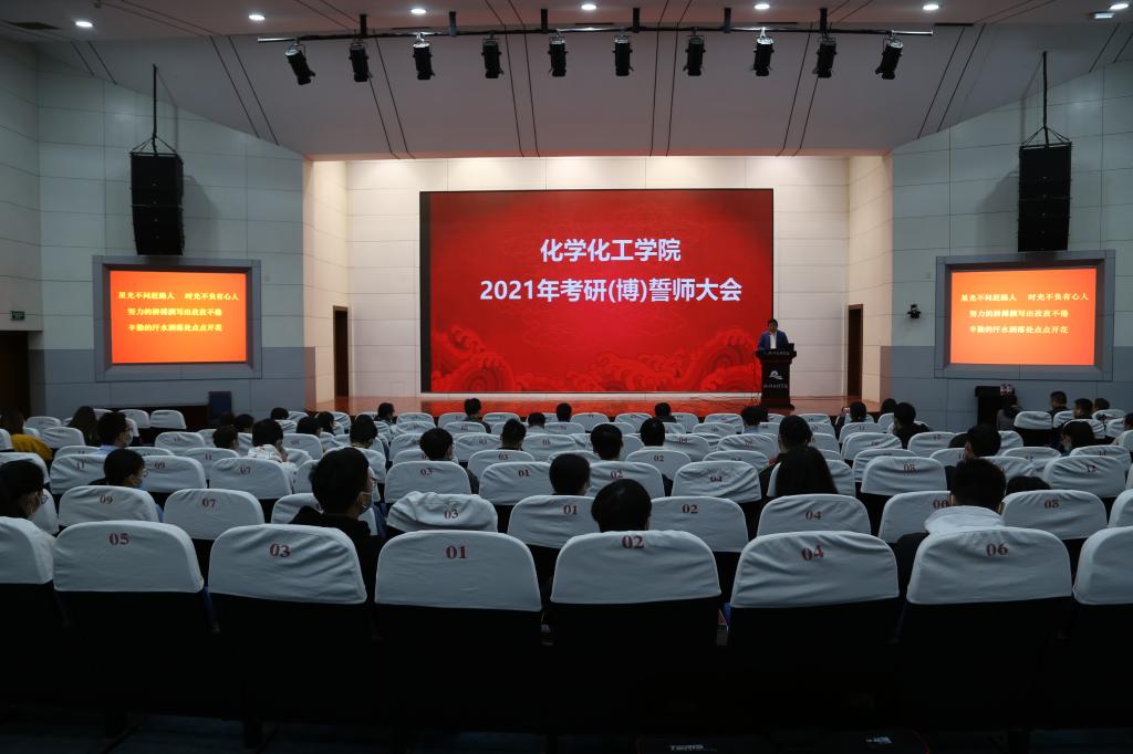 在铁城科教馆报告厅隆重举行2021年考研(博)誓师大会。学院党委书记魏佩敏,执行院长曾敏峰,党委副书记徐青,副院长陶菲菲,校心理健康中心主任徐浩,考研指导教师代表,学生科相关老师,2位考博学生和105名报名了2021年考研的学生参加了大会。