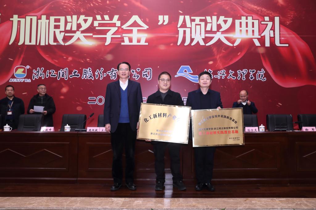 兼职硕士生导师聘任以及浙江省大学生校外实践教育基地、化工新材料产业学院、“闰土考研班”的授牌仪式。