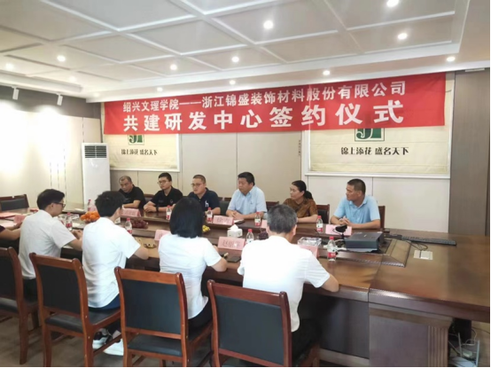 8月上旬,学院与浙江锦盛装饰材料有限公司共建研发中心签约,共同致力于新型高分子建筑绿色板材的升级与研发。
