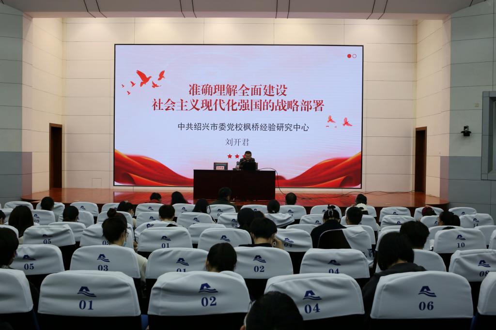 举行学习贯彻党的二十大精神专题辅导报告会,中共绍兴市委党校“枫桥经验”研究中心副主任刘开君博士应邀作专题辅导。报告会由学院党委副书记(主持工作)徐青主持,全院教职工、学生党员、全体研究生参加本次报告会。