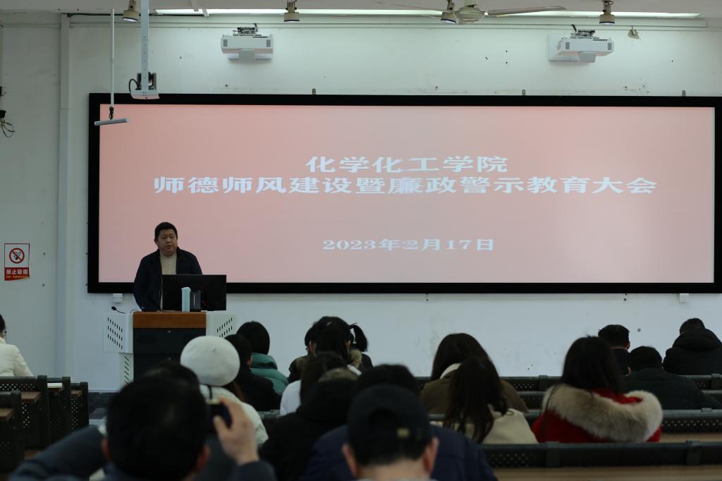 学院党委书记徐青给全院教职工上了一堂廉政专题党课,他以2022年学院校内巡察整改情况通报为切入点,结合《高校违纪违法典型案例汇编》和学院的面临的廉政风险形势,着重从违反政治纪律、违反中央八项规定精神、违反组织纪律、违反廉洁纪律、违反工作纪律、违反群众纪律、违反生活纪律和违反国家法律法规等八个方面开展典型案例剖析教育,以案示警、以案促改、以案促治。