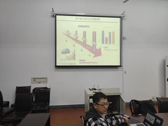 调研结束后,随行的海外优秀青年人才、大连化学物理研究所副研究员罗丹做了《锂硫电池关键材料微纳结构与设计与应用》的学术报告,学院相关教师及研究生参加了学术交流。