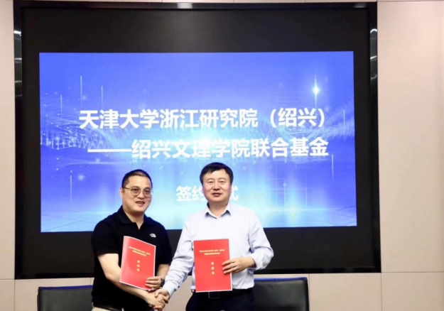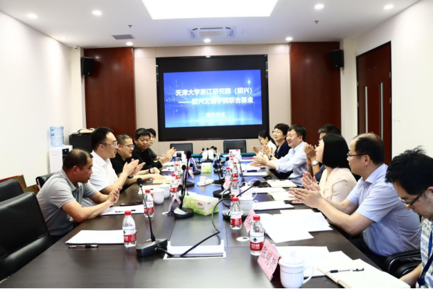 执行院长曾敏峰、党委书记徐青,校地方服务与合作处副处长姚博,天津大学浙江研究院(绍兴)院长乔建军、副院长党修湖、吕凤,仪器平台中心主任郭锦棠等人出席签约仪式。