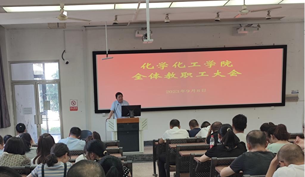 学院党委书记徐青传达学校干部大会精神,总结学院上半年和暑期工作开展情况,并对学院新学期工作提出四点要求:一是要聚焦重点工作,博士点创建是学院当前及较长时间的重点工作,全体教职工要将博士点创建的发展目标落到本职工作中去,紧紧围绕博士点创建群策群力,共同谋求学院跨越式发展;二是紧抓主题教育,深入开展调查研究,带头领衔破解工作难题,解决实际工作中的痛点难点问题,进一步创新学院现有发展格局;三是坚持立德树人,以生为本,勇担教书育人使命,培养事业心,坚守责任心,保持进取心。四是守住安全底线,继续强化对师生的安全宣传和教育,强化安全隐患排查,发现存在安全隐患的苗头,及时处理化解。