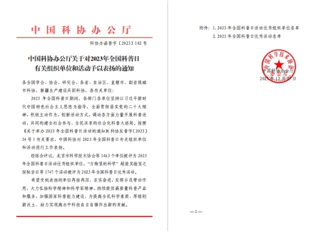 近日,中国科协办公厅发文对2023年全国科普日有关组织单位和活动予以表扬,其中韩国av
