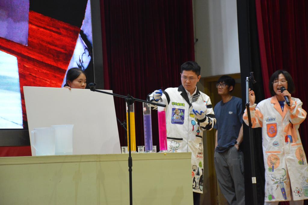 冯高峰教授、李琰博士和多位科普志愿者为绍初学子们呈现了一场别开生面的“科学小实验 思维大爆炸”——趣味科学实验秀活动。