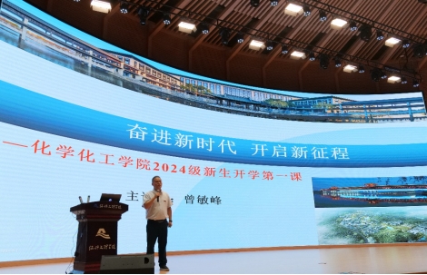 开学典礼在庄严的国歌声中拉开序幕。学院执行院长曾敏峰为本科新生代表佩戴校徽并讲授“开学第一课”。他从学院办学发展历程出发,用一组组详实的数据,回顾了过去几年,学院在学科建设、师资力量、科研成果和人才培养等方面取得的显著成就。勉励同学们要心中有梦想,以鸿鹄之志担起时代的重责;眼中有光芒,以奋斗之姿拥抱广阔的世界;脚下有力量,以从容之心迎接未来的挑战。期待四年后,大家努力考上心仪高校、科研单位的研究生,为人生道路奠定良好基础。