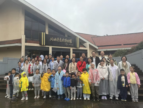 下午,老师们前往河姆渡遗址溯源中华文明起源,感悟文化熏陶。河姆渡遗址是中国长江下游地区新石器时代遗址,距今有7000-5300年之久。在博物馆内部看到母系氏族公社时期的生活场景,通过陶器、石器、木器、木构建筑等实物全面展现了我国先民的生存状态,是中华文明起源的重要摇篮。