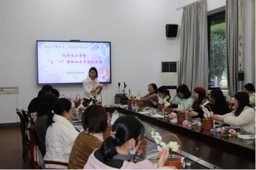 在志廉楼136会议室举办“绽放巾帼芳华,共赴花样之约”三八国际妇女节插花活动。学院女教职工暂别实验室、办公室和三尺讲台,在花香中共度春日午后。