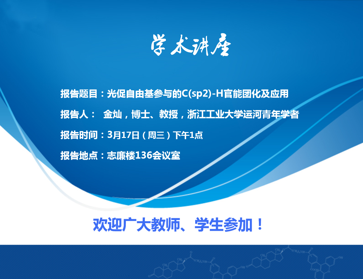 【学术报告】光促自由基参与的C(sp2)-H官能团化及应用