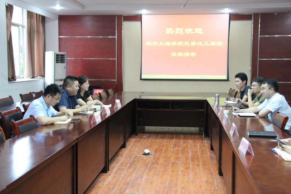 4日下午,我院三位老师以及衢州学院化学与材料工程学院党委副书记程海翔、苏国栋教授等老师出席交流会。交流会上,程海翔书记和徐青书记分别介绍了衢州学院化学与材料工程学院和绍兴文理学院化学化工学院发展的基本情况,学院特色工作等,重点针对两院在考研、创新创业、校园文化品牌建设等方面的特色做法及有益经验进行深入探讨�