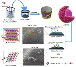 该论文的通讯作者为黄俊杰教授,我校为第一完成单位和通讯单位。为解决富锂锰基正极材料的首次库伦效率低的问题,本研究利用乙二醇作为溶剂、络合剂和形貌调控剂合成了具有{010}晶面优势的富锂锰基氧化物正极材料,{010}晶面具有优异的Li+迁移能力,因而材料的首次库伦效率和循环稳定性得到显著提升。
