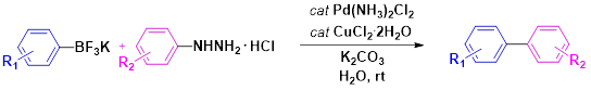 联芳基和芳炔基结构单元是各类复杂分子化合物的基础单元而且也是许多药效基团、天然产物、农用化学品等领域不可或缺的结构部分,制备此类化合物一直是人们关注的热点。传统的联芳基和芳炔基化合物合成方法是通过钯或镍催化亲电试剂(Ar-X, X =Cl,Br,I,OTf 等)与亲核试剂(Ar-M/ArC≡CH, M=B, Si, Sn等)两部分交叉偶联方式构建的,反应中往往也会引起许多副反应的发生,底物官能团受到一定的限制,因此开发其他亲电试剂和亲核试剂的绿色催化体系来合成联芳烃和芳炔烃化合物具有非常重要的意义。近期,韩国av