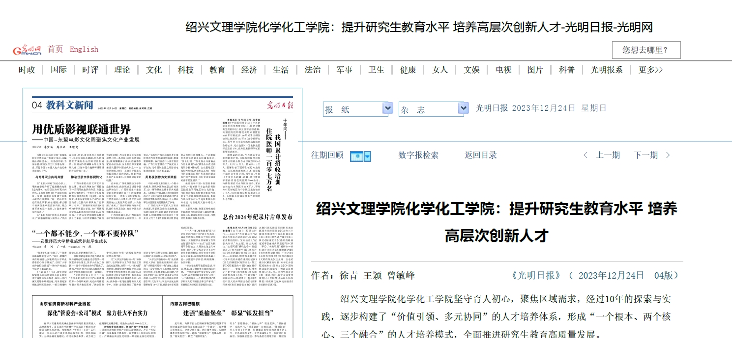 《光明日报》报道学院提升研究生教育水平 培养高层次创新人才